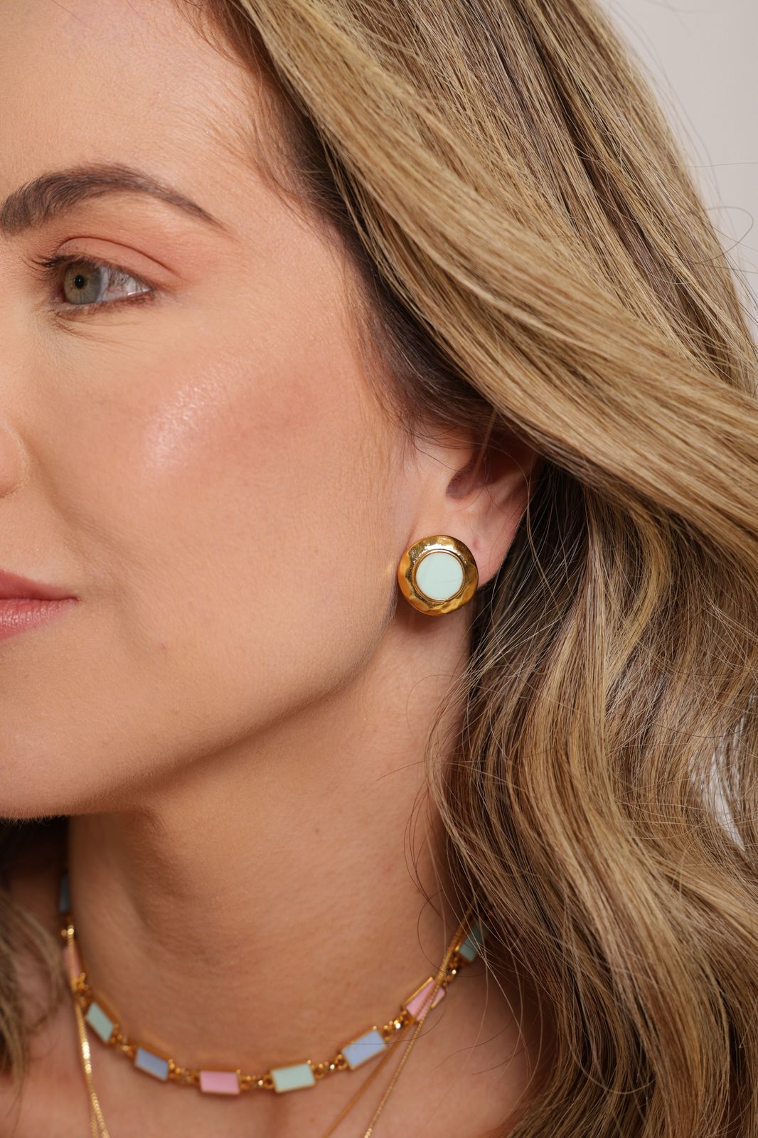Brinco com banho em ouro 18k e resina verde.