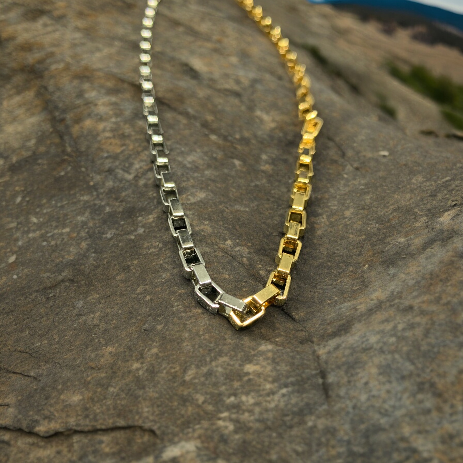 Colar unissex com banho em prata e em ouro 18k.