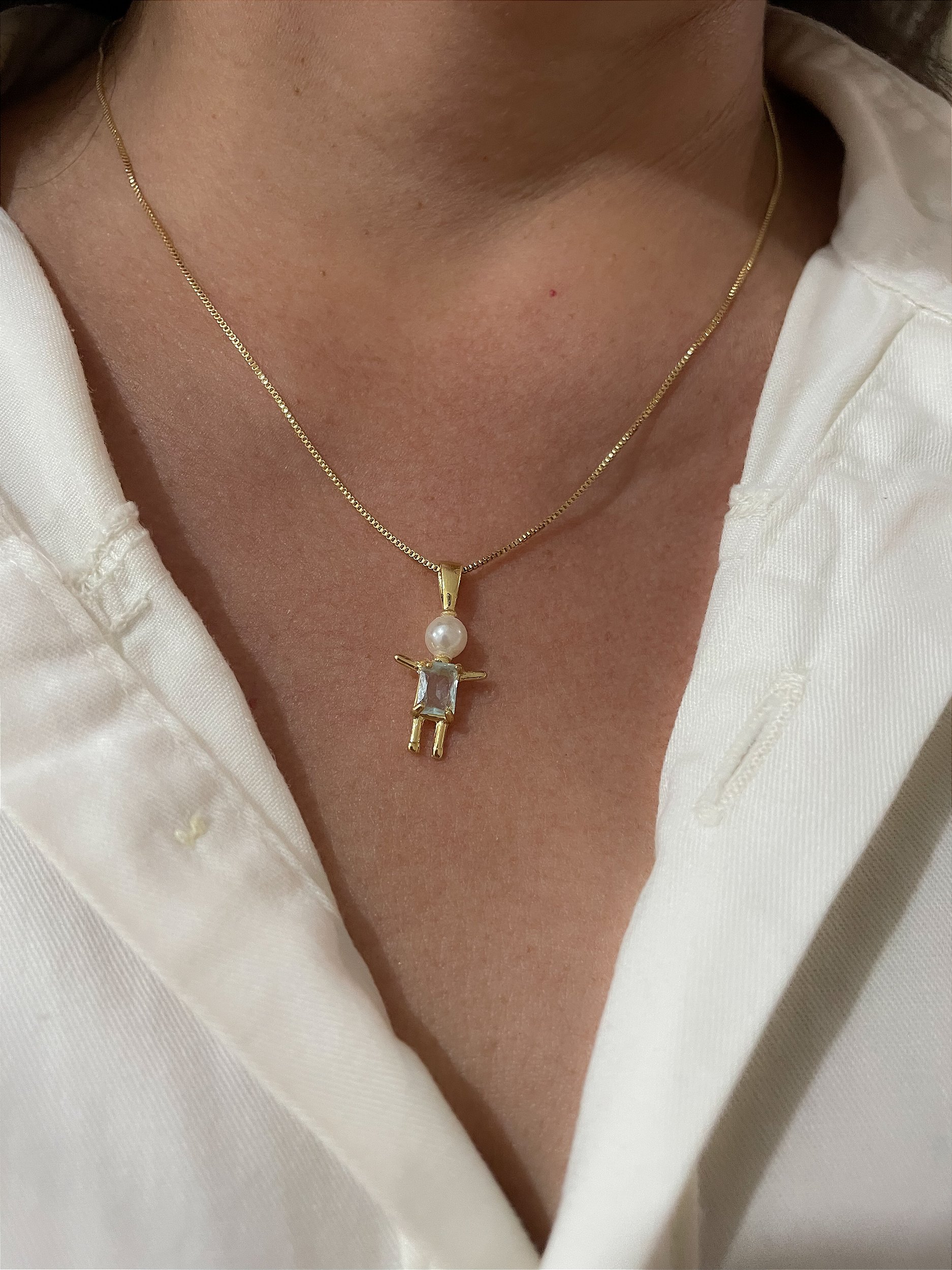 Colar com banho em ouro em 18k e pingente de menininho com pedra azul.