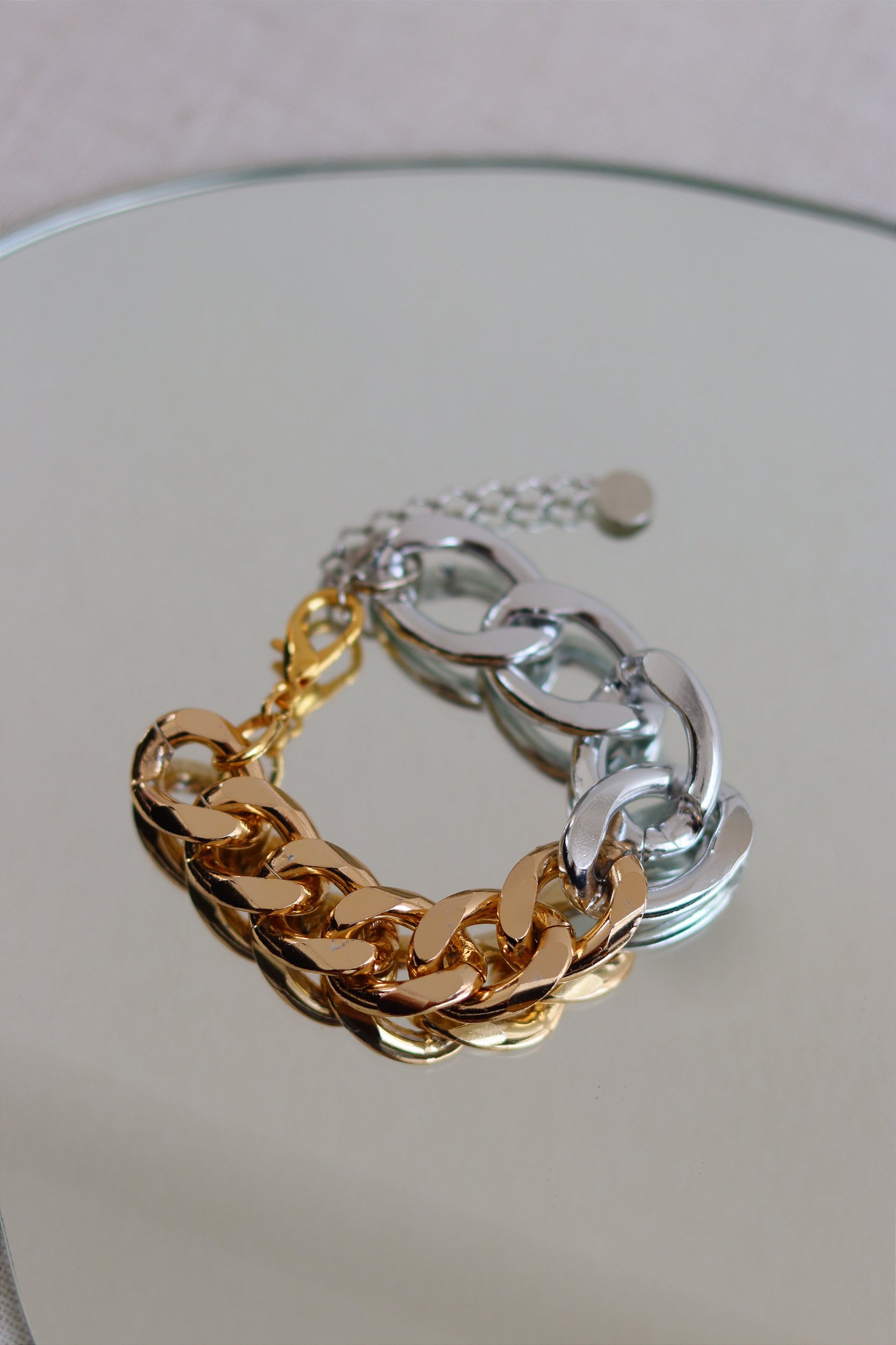 Pulseira Corrente Grumet banhada a ouro 18k e Ródio branco.
